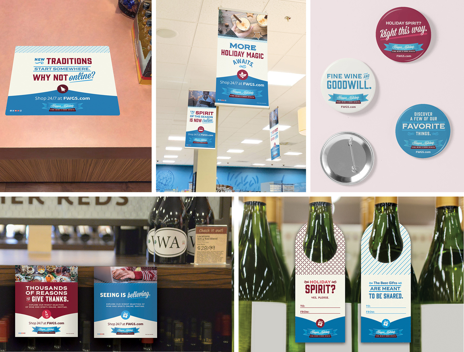 The holidays are a beloved time for connecting, entertaining, eating, and for many people, drinking. Fine Wine & Good Spirits (the state liquor stores of Pennsylvania) have a yearly campaign titled Happier Holidays, which hopes to provide consumers with the best ideas, tips, and recipes so they can celebrate a joyful holiday season. Tactics include out-of-home and transit ad placements, social media and digital marketing assets, as well as in-store displays and materials. The creative system features a vintage holiday aesthetic whilst showcasing a contemporary and sophisticated lifestyle, and features specific designs for Thanksgiving, December holidays, and New Year's.